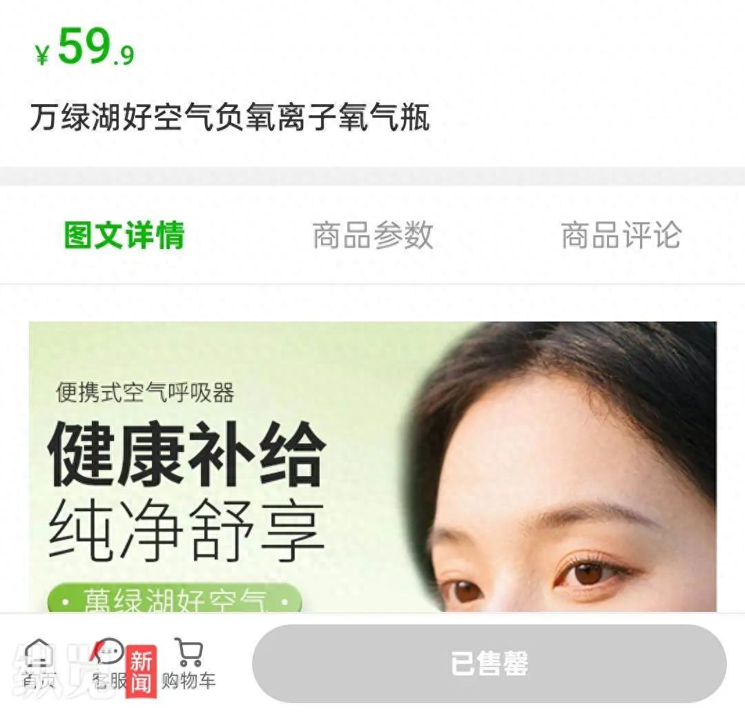 據萬綠湖景區“空氣罐頭”經銷商接受媒體采訪時表示,該產品發布后已經被搶空,產品主要是讓大家感受萬綠湖的空氣,有的地方空氣不是很好,可以多吸吸我們這兒的清新空氣。7月16日,記者在售賣該產品的店鋪看到,這款名為“萬綠湖好空氣負氧離子氧氣瓶”的產品售價59.9元,且已售罄。店鋪工作人員稱,目前空氣罐頭還是缺貨狀態,會不會補貨并不清楚。