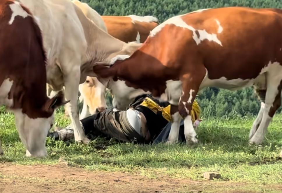 這不僅聽起來離譜看上去更離譜,視頻中一群人正從山坡上下來,正走著突然幾只牛聚集在一起了,旁邊的人還正納悶,牛牛怎么都朝著這邊過來了。