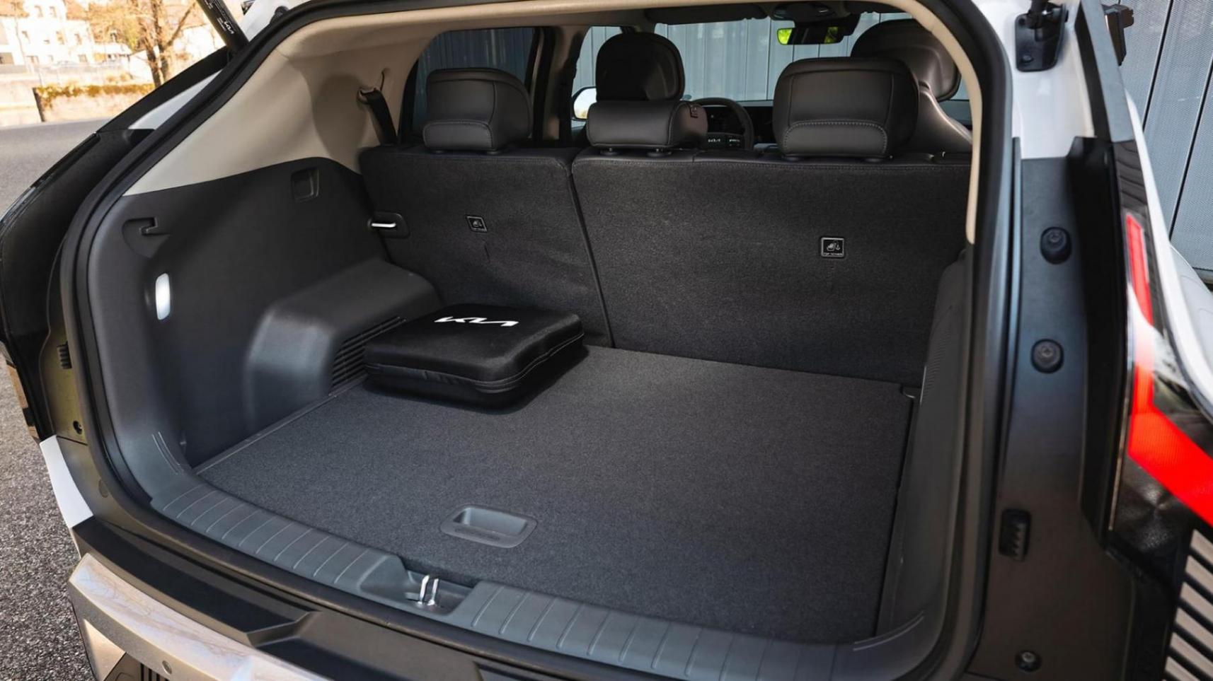 起亞EV3擁有同級中少見的前備廂(容量為25升),可放置充電線纜,一定程度上“解放”了后備廂的下層空間。而后備廂本身容量為460升,且形狀方正,不僅能放下日常行李,也可容納較大的旅行箱。此外,EV3支持拖掛——雖然僅限500千克,但搭配81.4千瓦時容量的大電池版本(售價41390歐元)時,拖掛能力可提升至1000千克。