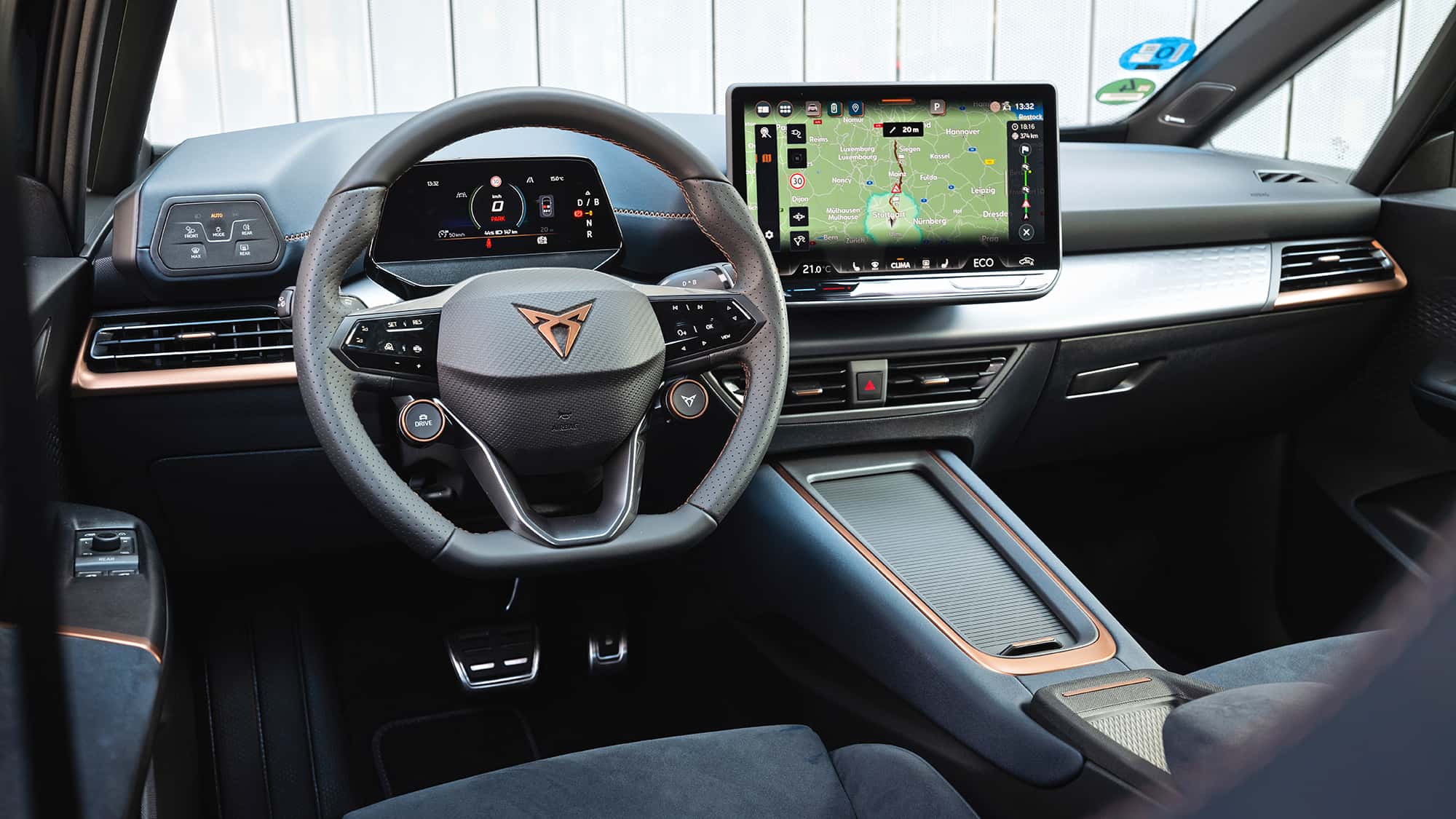 Cupra Born因空調觸控模塊條沒有背光和方向盤觸摸按鍵過于靈敏而備受爭議。其自動擋換擋旋鈕也位于方向盤后方,雖不算便捷,但前方配有小而信息量大的液晶儀表。相比起亞,Cupra對車內設計整體關注不夠。