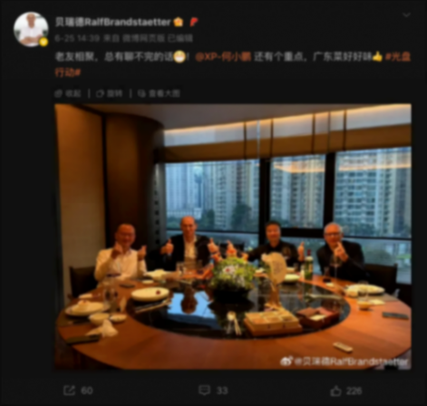 截至目前,雙方合作仍在進一步加深。不久前,大眾汽車集團(中國)掌門人貝瑞德在微博曬出與何小鵬在廣州聚餐的合照,而何小鵬的回應則惹人遐思:“除了好菜,還有好酒,還有好事。”同期,外媒爆料稱小鵬自研的圖靈AI芯片將集成到大眾明年在華新車。