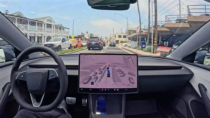 (海外特斯拉Model Y的滿血FSD界面,在未手扶方向盤情況下仍然在進行自主變道)