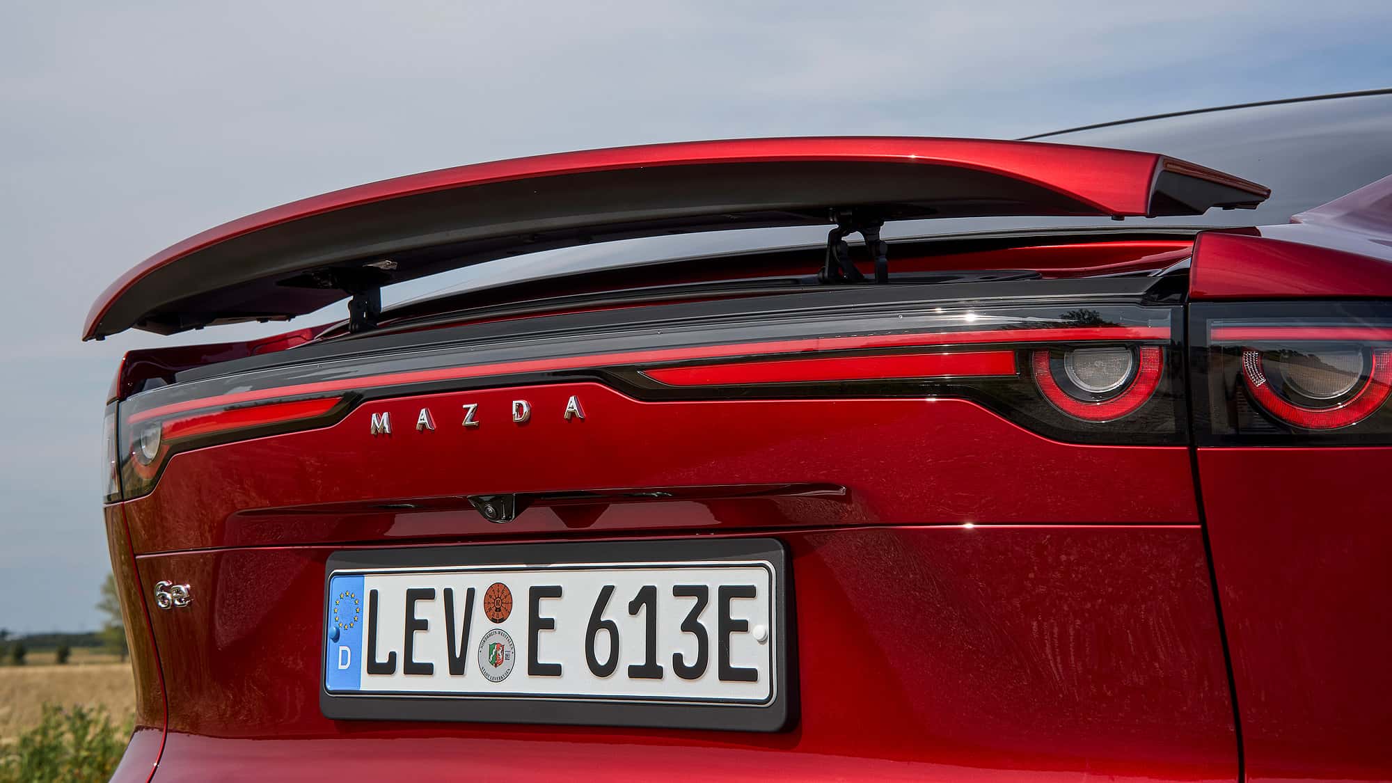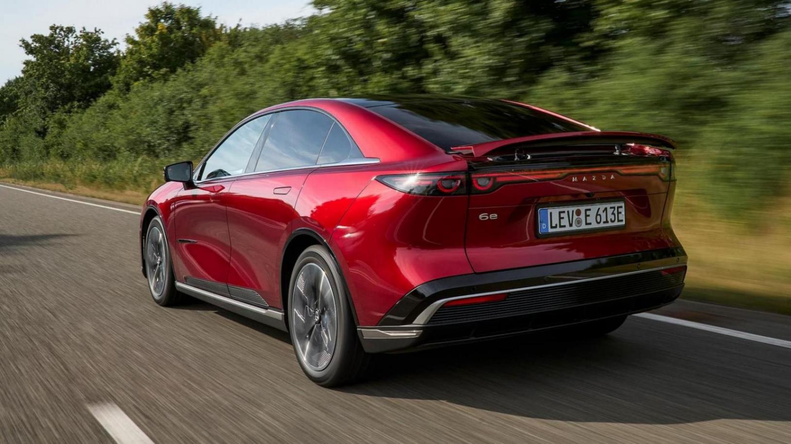 車尾設計保留了馬自達標志性的圓形尾燈,還配備可升降尾翼:車速達到90公里/小時的時候自動升起,低于50公里/小時持續三秒則自動收起。用戶還可選裝電動拖車鉤,最大牽引力為1500公斤。相比飽受電池容量批評的MX-30,馬自達6e主打約500公里的實際續航。