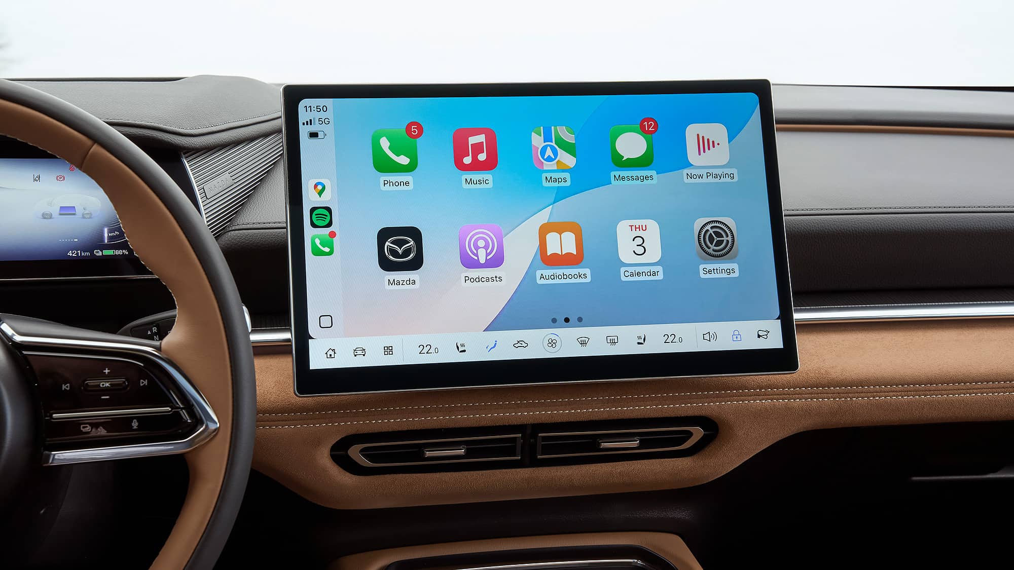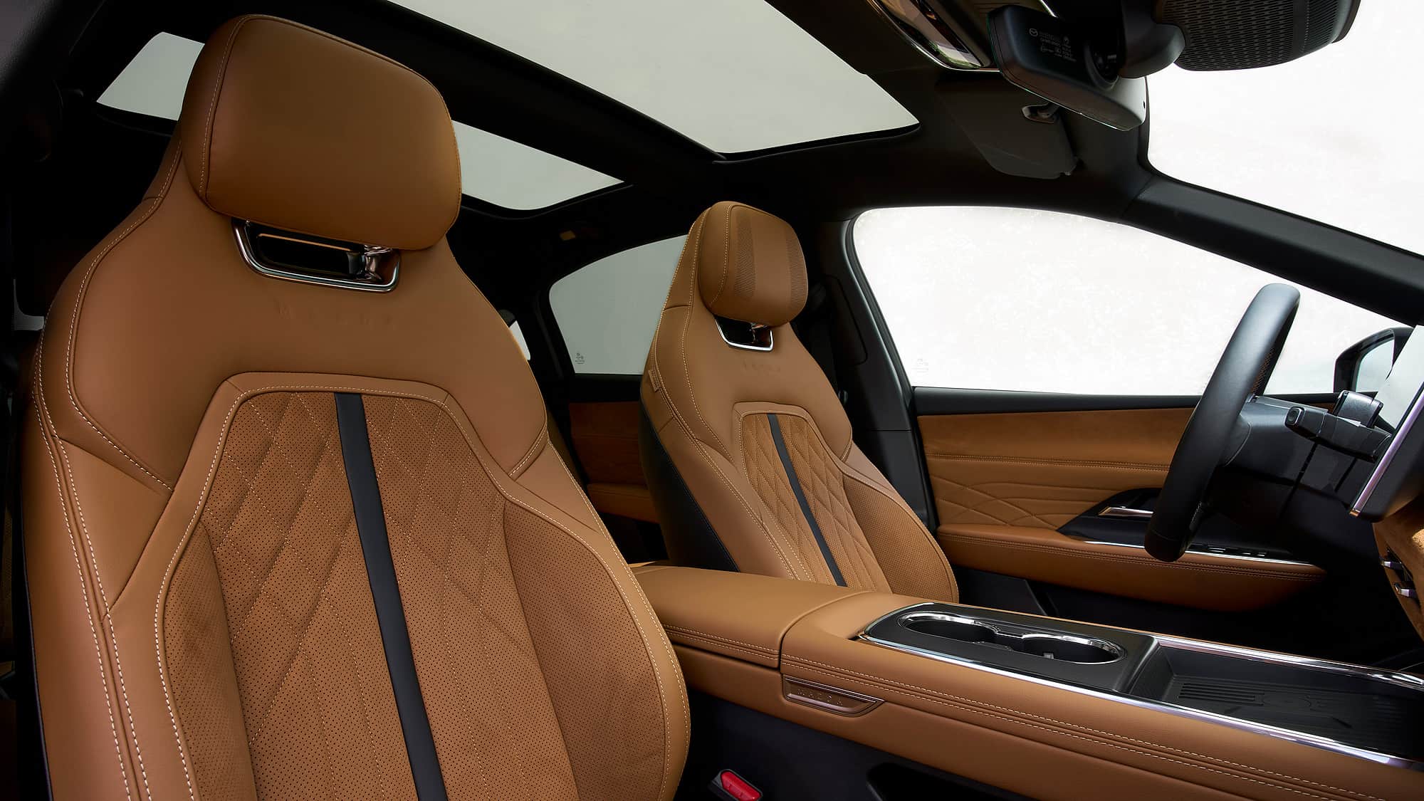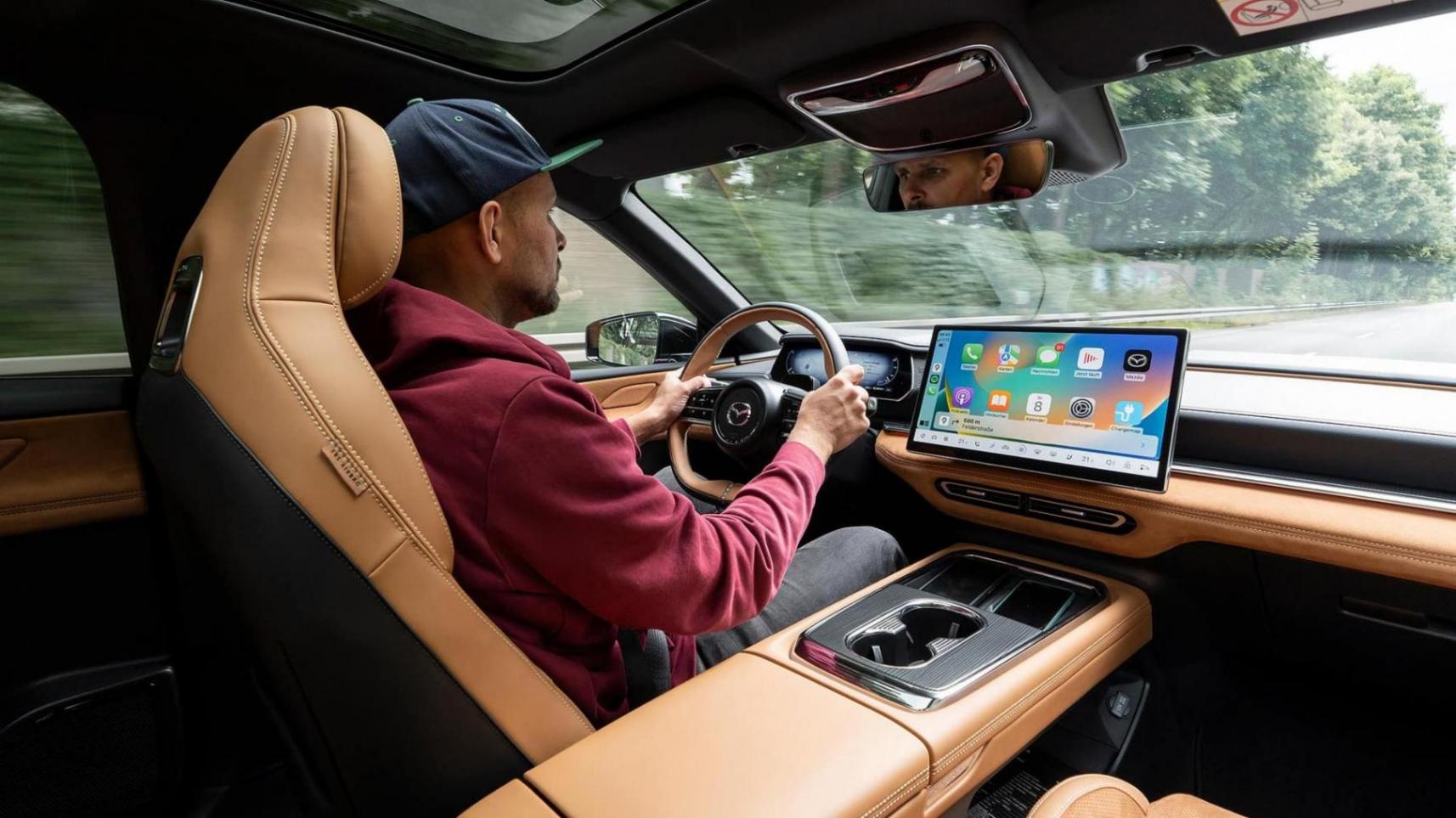 即將推出的新款CX-5將大幅減少實體按鈕,而馬自達6e的內飾設計則顯得更加“中式”:門把手為內嵌式,車內基本依靠觸控操作,連外后視鏡的調節也需通過屏幕進行。好在系統運行流暢,語音助手能識別一些指令,但暫時還不支持德語。