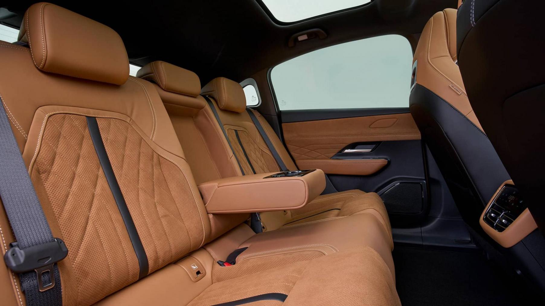 后排乘客可通過觸控面板控制玻璃天窗遮陽簾和獨立空調。座椅體驗如何?乘坐的坐姿非常低,前排座椅下沒有太多腳部空間,但腿部空間還算充裕。