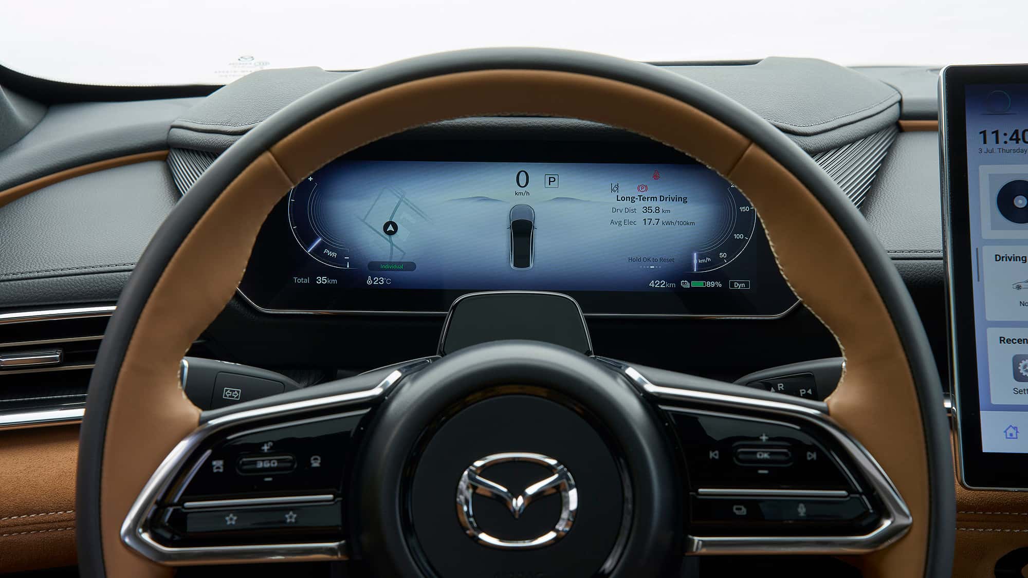 日常駕駛中,方向盤操控流暢,但你需要經常微調方向。車輛的直線行駛表現并不理想,車道保持系統雖然能穩定居中,但根據路況不同,方向盤會持續微幅擺動。更關鍵的是,馬自達6e并沒有方向盤電容檢測功能,因此車輛會頻繁要求你輕轉方向盤,以確認你還在駕駛。