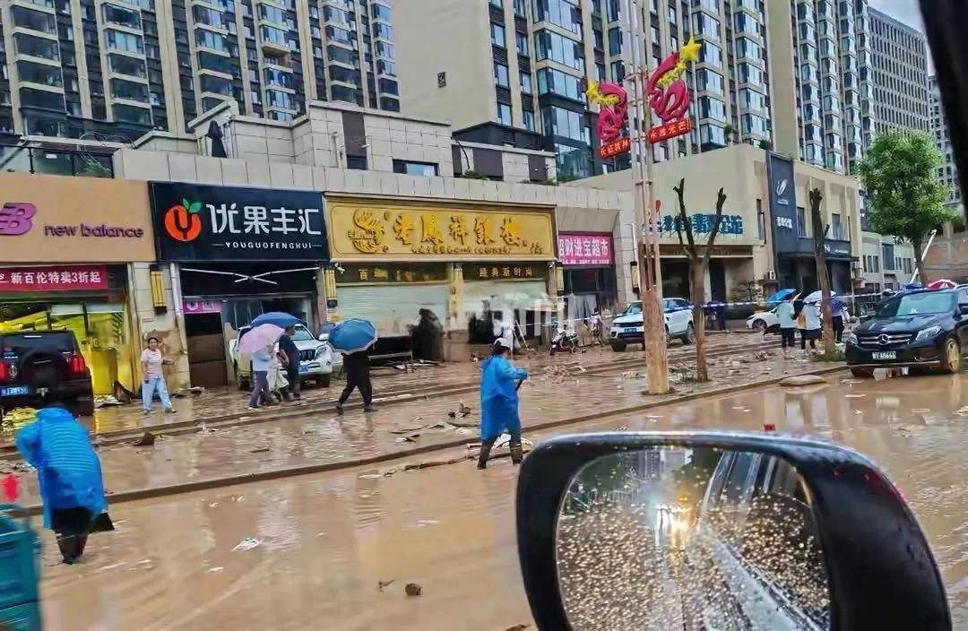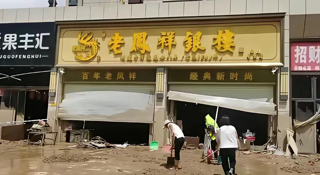 當日清晨,老鳳祥金店的員工像往常一樣準備開門營業,然而,一則緊急的洪水通知打破了平靜。員工們匆忙撤離,可洪水來勢洶洶,很快就涌入了店內,水位迅速上升到1米多,店鋪大門也被沖開,店內的貨柜以及柜臺里的黃金等首飾,連同保險柜一起,都被洪水卷走。