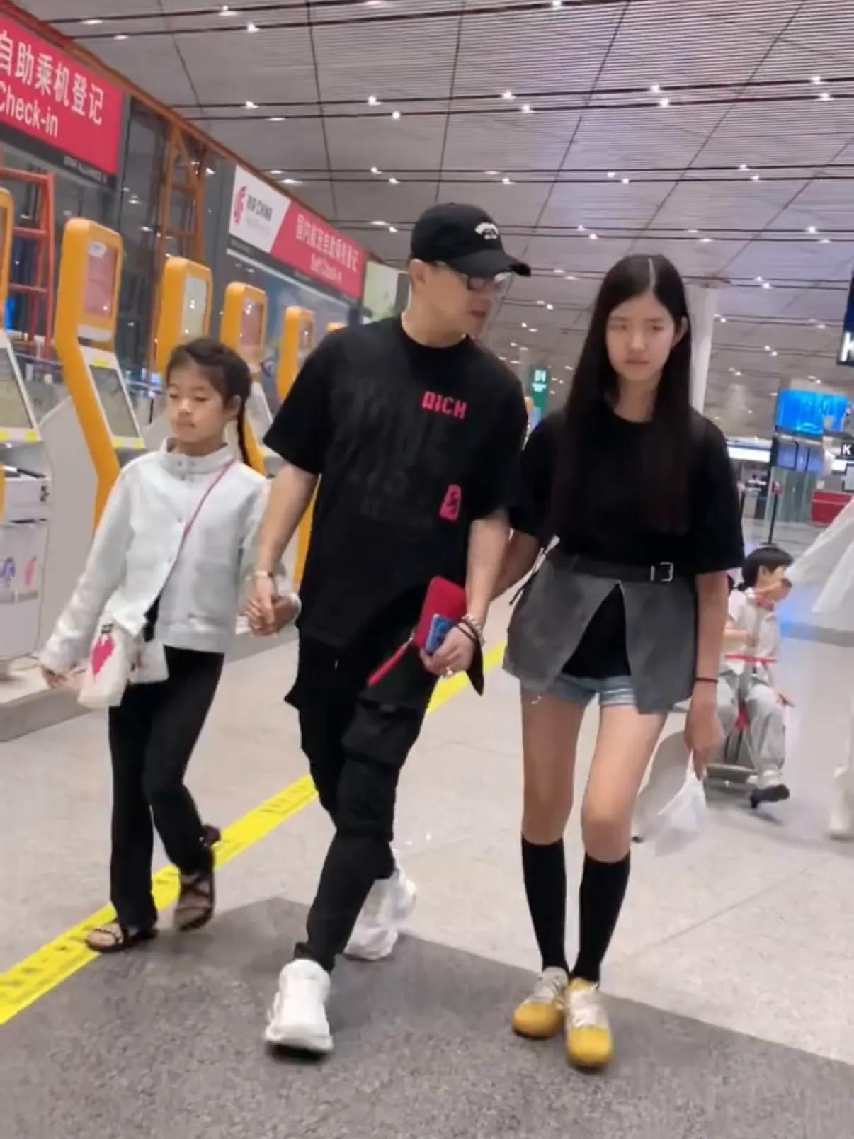 機場通道瞬間變成大型“曬娃”現場!只見汪峰一身休閑裝束,左手緊緊牽著9歲的小女兒醒醒,右手則牢牢握著另一位漂亮小姑娘的手——這位,正是他與前妻康作如所生、極少在公眾面前露面的二女兒!父女仨并排走著,汪峰那寬厚的背影仿佛一道堅實的屏障,為孩子們隔開了外界的喧囂。
