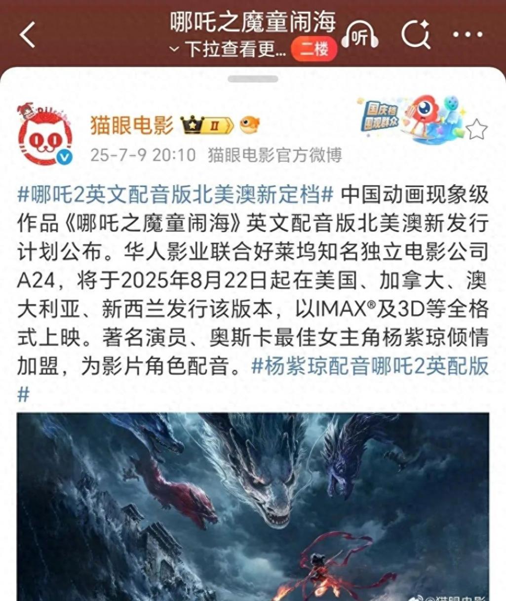 最近聽說《哪吒2》又要上映了,之前不是說6月底才下映嗎?這不,8月22號又要在美國、加拿大這些地方放英文版的。很多人納悶為啥要折騰,難不成想沖200億票房?其實不是,這次主要是沖著奧斯卡獎去的。