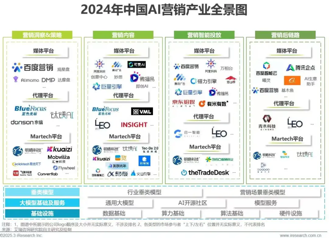回看國內,騰訊近日首次公布了“AI產品應用全景圖”,騰訊正構建覆蓋AI營銷全鏈路的自有基礎設施。同時,坐擁微信、QQ兩大國民級應用,其掌握的10億級用戶實時行為數據與流量入口,正大幅擠壓中小營銷服務商的生存空間。