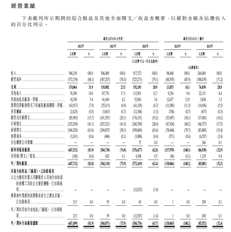 基本財務(wù)情況顯示,云天勵飛近幾年實現(xiàn)營收較大幅度增長。2022年、2023年、2024年及2025年前3個月,云天勵飛的收入分別為5.46億元、5.06億元、9.17億元、2.64億元。