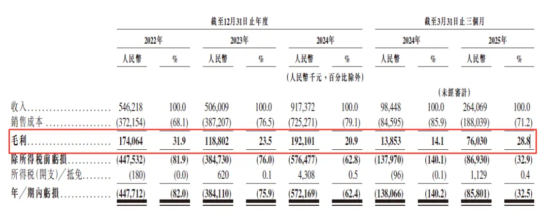 營收質(zhì)量層面看,云天勵飛的毛利率整體不到30%。由于云天勵飛的AI芯片不涉及芯片制造,公司整體定位是Fabless廠商。以國內(nèi)同類型公司對比,云天勵飛的毛利率屬于較低水平,低于同樣做AI芯片的寒武紀(55.99%)、做國產(chǎn)CPU的龍芯中科(38%)、做國產(chǎn)CPU和AI芯片的海光信息(61.69%)。也低于近期沖刺上市的國產(chǎn)GPU公司,沐曦的55%(2020年一季度)和摩爾線程的70%(2024年度)。