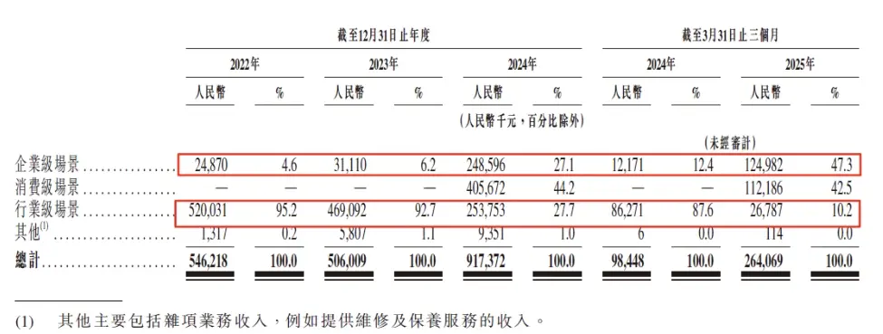 按收入占比劃分,當前云天勵飛的收入主要由企業(yè)級和消費級業(yè)務(wù)構(gòu)成,兩者合計占比接近90%,并逐漸取代了云天勵飛最初實現(xiàn)商業(yè)化的行業(yè)級業(yè)務(wù)。