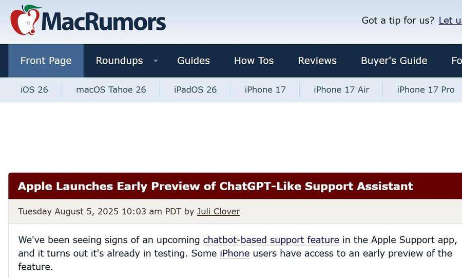 8月6日消息,據macrumors報道,Apple支持應用中即將推出基于聊天機器人的支持功能,目前該功能已進入測試階段。部分iPhone用戶已獲得提前體驗該功能的權限。