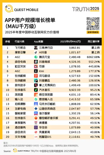 據QuestMobile 2025半年度APP用戶規模增長榜單(MAU千萬級)顯示,截至今年6月,汽水音樂月活規模同比增長態勢近乎翻倍,以9922.33萬直逼億級大關。與之呼應,截至稿前,汽水音樂在Apple store免費app排行榜上位列第6,網易云音樂與騰訊音樂旗下“拳頭產品”QQ音樂、酷狗音樂分別位于第67、第73、第92。