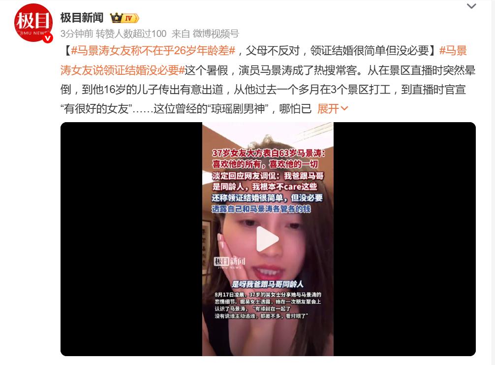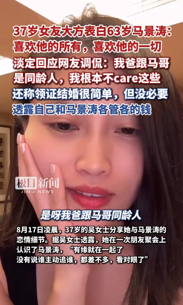 8月17日凌晨,馬景濤的37歲女友吳女士在直播中火力全開,正面硬剛網(wǎng)友對她和63歲馬景濤“父女戀”的調(diào)侃:“我爸跟馬哥是同齡人,我根本不care這些!”這波“年齡差算啥,真愛無敵”的宣言,瞬間讓評論區(qū)炸了鍋。