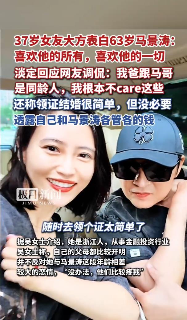 吳女士透露,兩人是在朋友聚會上認識的,“有緣就在一起了”。更讓人意外的是,她直言馬景濤是她的“兒時男神”,喜歡他的一切。而她的父母雖然和馬景濤同齡,卻對這段戀情持開放態(tài)度,“沒辦法,他們比較疼我”。網(wǎng)友調(diào)侃:“這大概就是‘你爸的兄弟成了你老公’的現(xiàn)實版?”