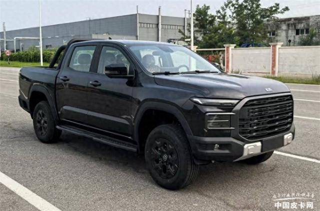新車在外觀造型上與此前申報車型保持一致,大尺寸進氣格柵、分體式燈組、車頭處巨大的“威麟”標志等依然顯眼,并在中網、燈腔內部、車輪等處進行了大面積黑化,看起來具有更強的運動氣息。新車長寬高分別為5330/1920/1890mm,貨箱尺寸為1530/1620/515mm,額定載重495kg,輪胎規格為245/70R17。
