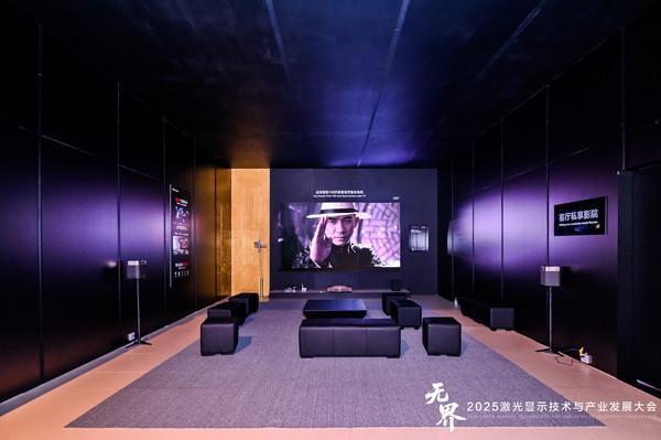 其二,它重新定義了科技與家居的美學關系。可卷曲激光影院江山畫卷R1的終極價值,在于它首次真正實現了顯示設備與家居空間的有機"融合"。這并非簡單的功能疊加,而是一次由中國科技主導的美學范式創新。通過主機小型化技術(體積縮小55%)和極簡柜體的一體化設計, 江山畫卷R1創造了"全隱、半升、全展"三種自由切換的形態:屏幕完全收起時,它是一款極具東方韻味的藝術柜體,"鈦晶灰"拉絲工藝與精工細節讓其隱匿于墻卻提升空間質感;屏幕半升時,化身為展示音樂可視化與家庭記憶的社交氛圍屏,成為生活情感的載體;完全展開時,則瞬間變為100吋IMAX級影院,提供極致沉浸體驗。這一設計徹底化解了傳統電視與家居美學之間的沖突,讓設備從突兀的"空間焦點"轉變為收放自如的"空間配角",僅在需要時成為主角,完美詮釋了"以中國科技定義家居美學新形態"的深層內涵。
