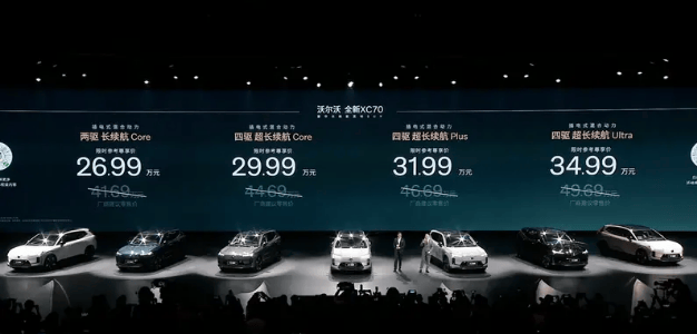 全新XC70共推出4款,官方指導(dǎo)價41.69萬元—49.69萬元,疊加優(yōu)惠后實際限時尊享價為26.99萬元—34.99萬元。