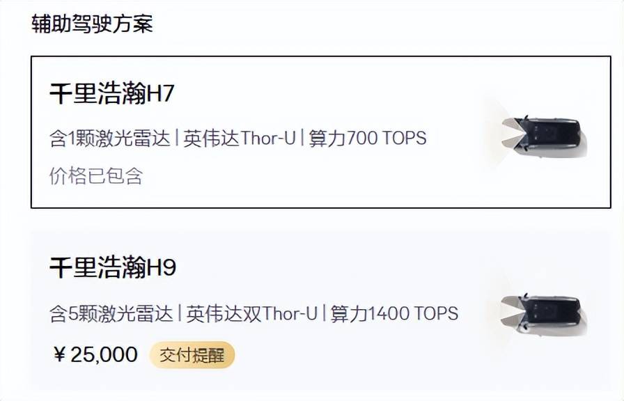 極氪品牌搭載的千里浩瀚H7,雖然官方標價3.5萬元,但是只要你選擇了“智駕版”車型,就會當做免費權益送給你。