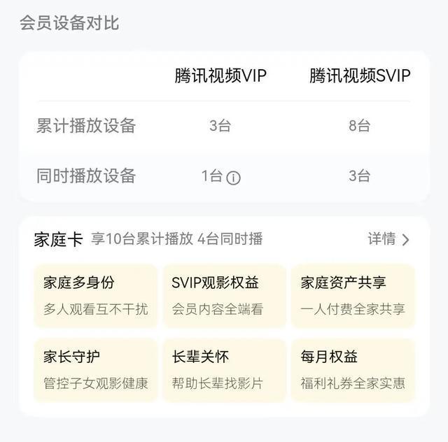 據《南方都市報》,早在2023年,騰訊視頻和優酷率先將會員等級分為了VIP和SVIP,后者最開始與前者的主要區別在于“可使用的設備數量”以及“是否可全端播放”。2024年12月,騰訊視頻會員權益進行調整,VIP會員支持登錄和同時播放的設備數量均減少。