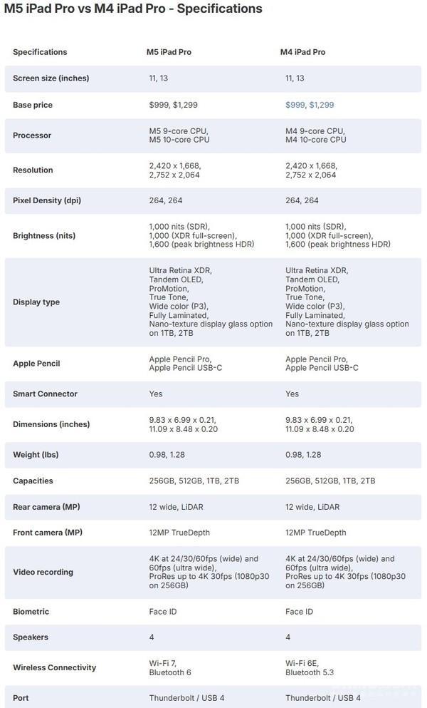 iPad Pro M5 vs M4