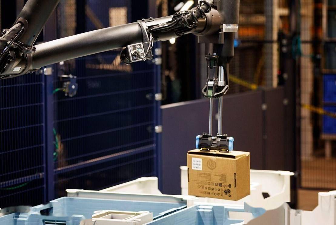 Blue Jay 能夠搬運亞馬遜 75% 的存儲物品,并計劃最終成為支撐當日達配送站的“核心技術”。亞馬遜表示,Blue Jay 基于 AI、數字孿生和已有機器人數據,僅用一年多時間開發完成,實現了“協調多條機器人手臂同時完成多項任務,將原本三處獨立機器人工作站整合為一個流暢工作空間,在同一地點完成揀選、存放和整合”。