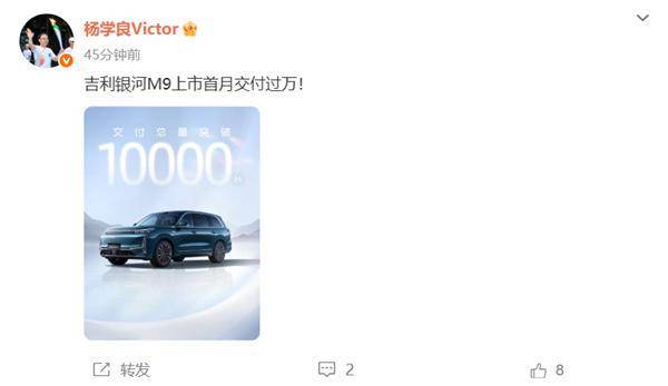 高配低價成爆款!吉利銀河M9上市首月交付破萬,5米2全尺寸SUV性價比拉滿