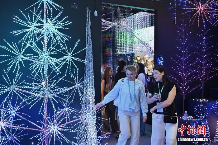 步入節日用品展區,一座紅色的“圣誕城堡”映入眼簾,眾多境外采購商正在廣東盈浩工藝制品有限公司(以下簡稱“盈浩”)展位前駐足“打卡”。該公司外貿業務副總經理黃珺說:“隨著圣誕節等西方節日的臨近,當前是我們產品出海的旺季。”