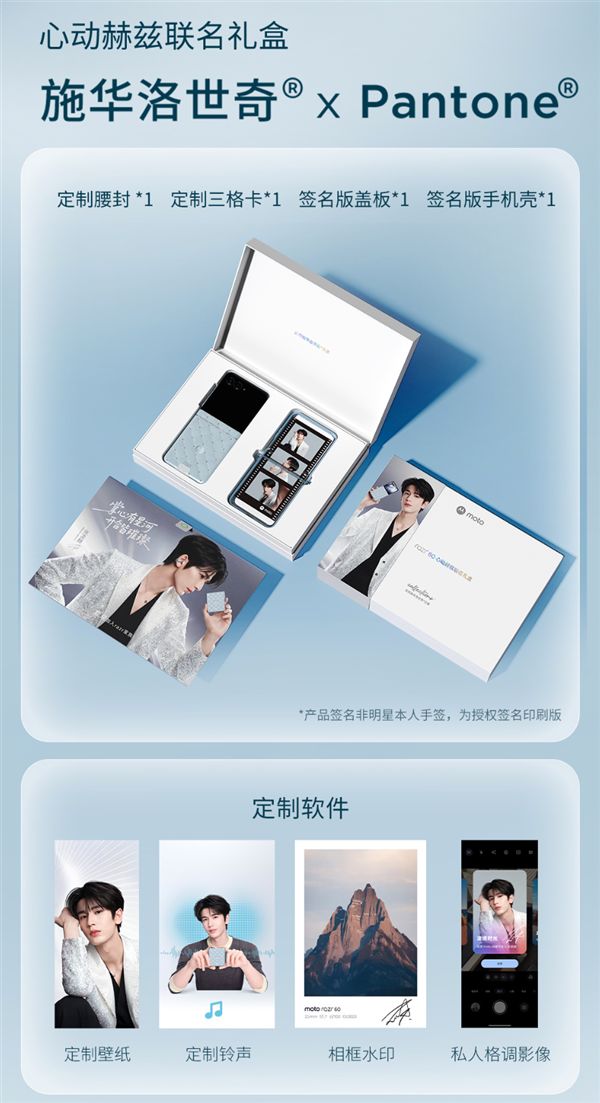 禮盒內(nèi)含定制腰封、定制三格卡、簽名版蓋板、簽名版手機殼,此外還有定制壁紙、鈴聲、相框水印、私人格調(diào)影像風格,誠意滿滿。