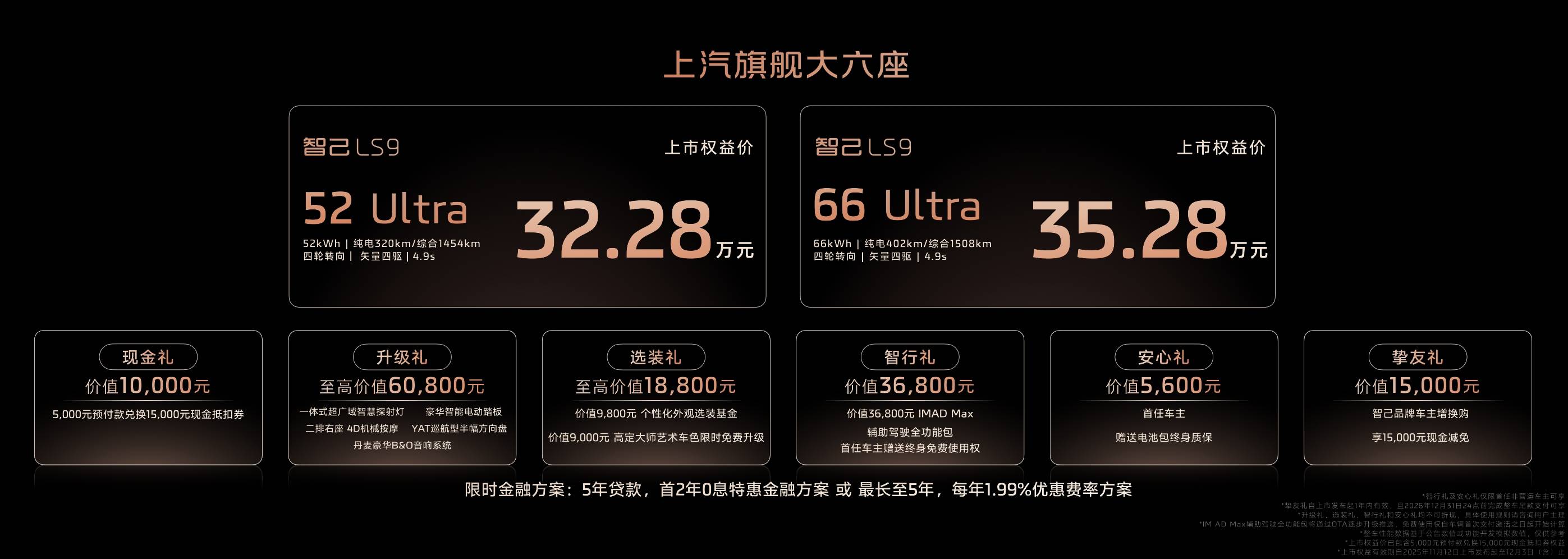 11月12日,上汽集團旗下正式推出全新大型SUV智己LS9。兩款增程車型售價分別為32.28萬元和35.28萬元,以“全系皆Ultra”的產品定位闖入30萬級大型SUV市場。