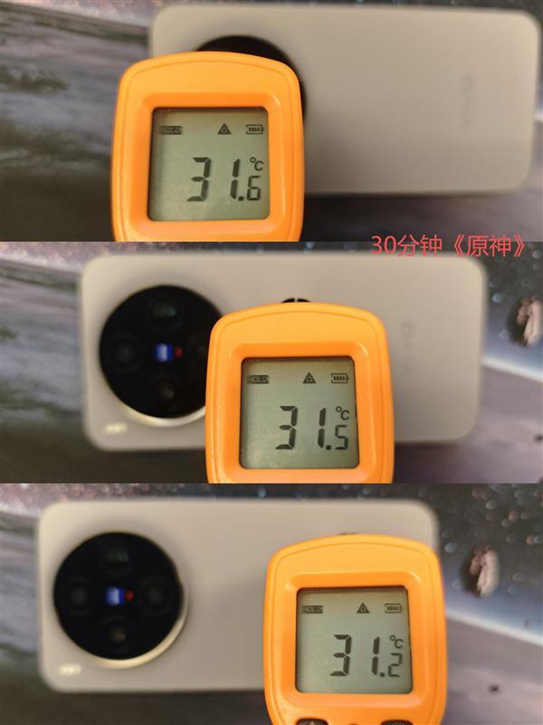 即便是高負載的30分鐘《原神》,全機身溫度也穩定在31.2℃-31.6℃,整體溫差控制在6℃以內,長時間握持無明顯燙手感。