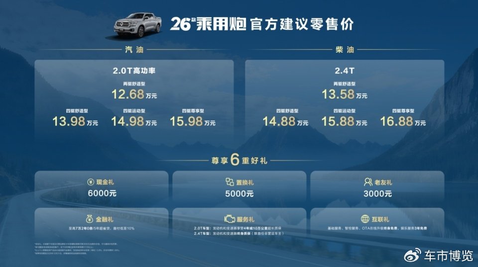 9.98萬(wàn)元起,2026款長(zhǎng)城炮廣州車展上市