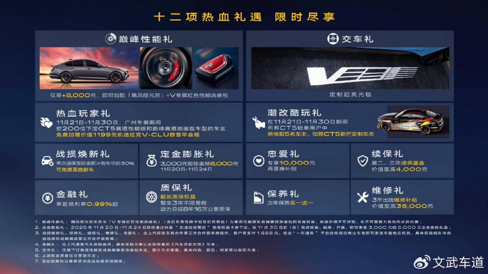 11月21日,2025廣州車展展臺化身熱血賽道派對,明星車型全新以滿改姿態(tài)熱血登場。此次,全新CT5發(fā)布了V專屬性能車色「颶風啞光灰」及V專屬紅色性能選裝包:包括專屬Brembo V標涂裝紅色高性能卡鉗、賽道專屬紅色鑰匙等性能裝備。同時,用戶還可享受12重豐富豪禮,包括以8000元解鎖價值18000元熱血裝備的巔峰性能禮、限時3000元抵6000元的定金膨脹禮、限時贈送價值1199元V-CLUB會籍的熱血玩家禮等。值得一提的是,全新CT5還推出了王炸級“戰(zhàn)損煥新禮”,車輛單次定損超三成即可免費置換等價新車,為年輕人的第一臺后驅(qū)車霸氣兜底。源于純粹的賽道熱愛,凱迪拉克全新CT5出廠即滿改,本色出街熱血上場。
