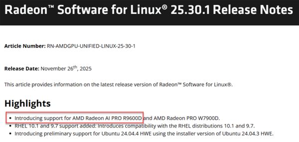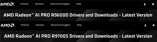 Radeon AI PRO R9700S和 Radeon AI PRO R9600D兩款新顯卡的官網支持頁面已經可以訪問,預示著這兩款顯卡即將到來。