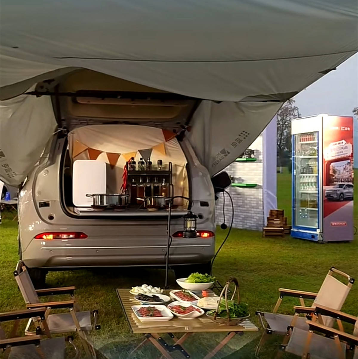 從產品基礎實力看,第三代E5 PLUS已具備扎實競爭力。其純電續航突破230公里,全時四驅系統覆蓋復雜路況需求,在12-15萬元價位段形成鮮明差異化優勢。但真正引發市場關注的,是它提供的兩套官方露營套件:基礎版“影院舒享露營包”配備自動充氣床墊、專屬天幕,可快速將車輛轉化為移動休息艙;高階版“全景旗艦露營包”則進一步集成嵌入式電磁爐、即熱飲水機及磁吸茶具,將臥室、廚房、客廳功能集于一身。這種“輪上三室一廳”的解決方案,讓用戶無需后期改裝即可合法合規地享受戶外生活,直擊露營愛好者對裝備便攜性與安全性的雙重痛點。