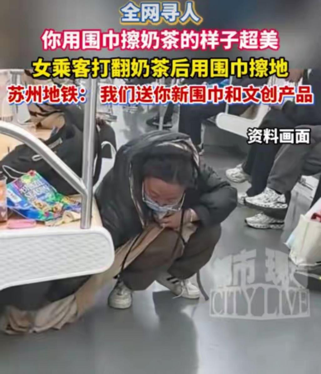 網(wǎng)友們的評(píng)論清一色的感動(dòng):“這才是刻在骨子里的素養(yǎng),圍巾臟了能洗,責(zé)任心丟了可撿不回來(lái)”“換我可能早就溜了,她居然舍得用自己的圍巾擦黏糊糊的奶茶”“細(xì)節(jié)見(jiàn)人品,蹲下來(lái)的那一刻,她比誰(shuí)都美”。就連蘇州地鐵都主動(dòng)下場(chǎng)尋人,特意備好了新圍巾、蘇州特色文創(chuàng)禮包和食堂餐券,全網(wǎng)喊話:“想當(dāng)面謝謝你!”。