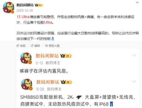 據博主“數碼閑料站”此前爆料,iQOO 15 Ultra 將升級主動散熱風扇與肩鍵,并采用一套全新的未來科技感設計。其散熱系統尤為引人關注,據稱將配備“行業最大且散熱效率最高”的風扇,有望使本代芯片釋放出接近下一代水平的極致性能。