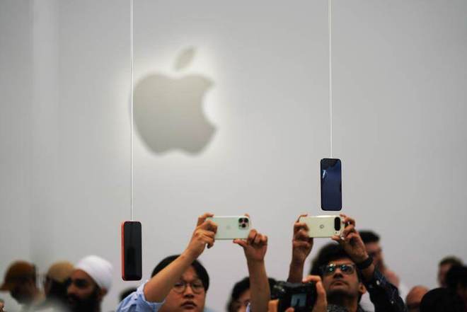 消費者體驗蘋果手機。新華社圖