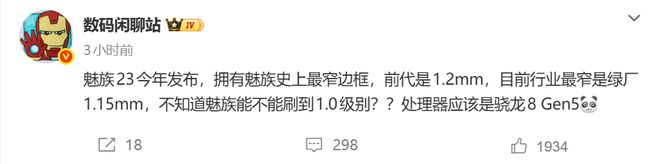 1月12日,繼魅友新春會官宣后,魅族年度旗艦魅族23的核心配置細節浮出水面。知名數碼博主“數碼閑聊站”今日透露,這款新機的處理器應該是驍龍 8 Gen5。據悉,該機將搭載驍龍8 Gen5處理器,同時實現品牌史上最窄邊框設計。