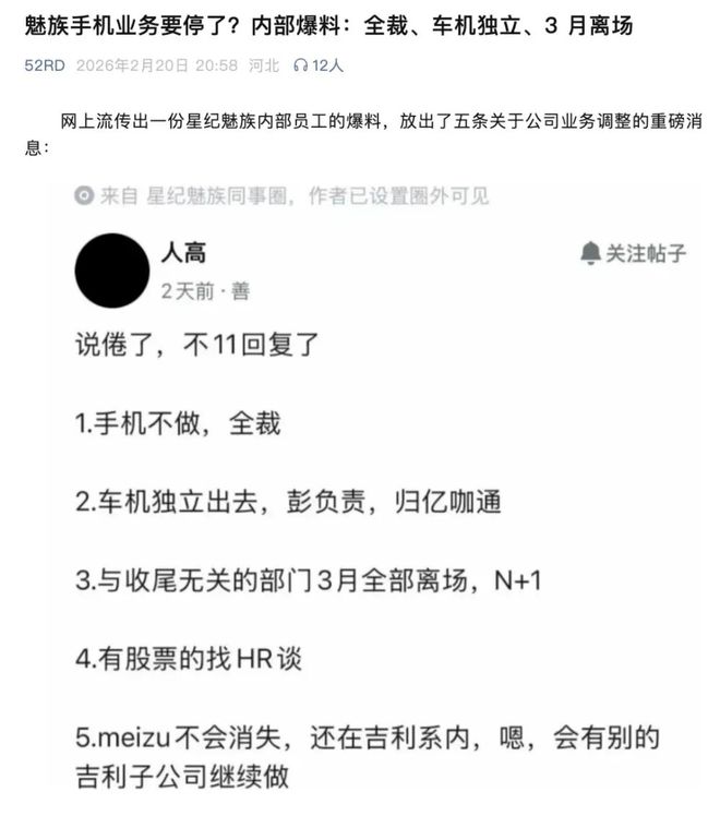 按照爆料人的說(shuō)法,魅族從今年一月中旬開(kāi)始,便在陸陸續(xù)續(xù)清退外包團(tuán)隊(duì),魅族現(xiàn)有人力在外包撤場(chǎng)后難以支持魅族23項(xiàng)目的繼續(xù)研發(fā)。如果沒(méi)有注資,吉利甚至可能會(huì)考慮分拆業(yè)務(wù)出售。